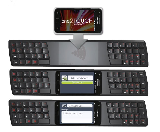 Японская компания Elecom совместно с норвежской one2TOUCH показали еще одну возможность использования NFC-чипа. Речь идет о беспроводной гибкой клавиатуре, которая подключается к Android-смартфону (требуется версия не менее 2.3.4). Для подключения достаточно скачать драйвера с Google Play и положить смартфон на специальную площадку посредине клавиатуры. Отметим, что устройство снабжено небольшим аккумуляторам, который невозможно подзарядить. Производитель настаивает, что заряда должно хватить на трехлетний срок работы клавиатуры.