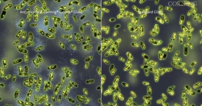 Другой, не менее важной и нужной, разработкой является производство защитных поверхностей с антибактериальными свойствами. Ни для кого не секрет, что на мобильных девайсах собирается множество микробов, бактерий и грибков. Бороться с микроорганизмами будут ионы серебра, которые на молекулярном уровне будут присутствовать в новом покрытии. При этом, в компании отмечают, что нововведение никак не скажется на чувствительности поверхности. Применение антибактериального стекла не ограничится привычными для нас смартфонами и планшетами, в Gorilla Glass уверяют, что новая разработка будет широко использоваться в таких устройствах, как общественные телефоны, устройства в больницах, сенсорные панели в метро и тд.