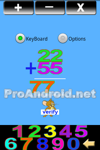 Math Kidz — обучающая программа, с помощью которой ребенок может научиться основам математики: сложению, вычитанию, умножению. На первом уровне ответ нужно выбирать из одного из предложенных вариантов, тогда как на следующих уровнях ответ можно вводить вручную и затем проверять.