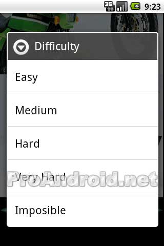 Motorcycle Puzzle — красивая игра-паззл для Android, в которой нужно из фрагментов собирать фотографии мотоциклов. В зависимости от выбранного уровня сложности картинка может быть разбита на 4, 9, 16, 25 или 36 фрагментов. В любой момент времени можно посмотреть исходное изображение. Поддерживается установка на карту памяти.