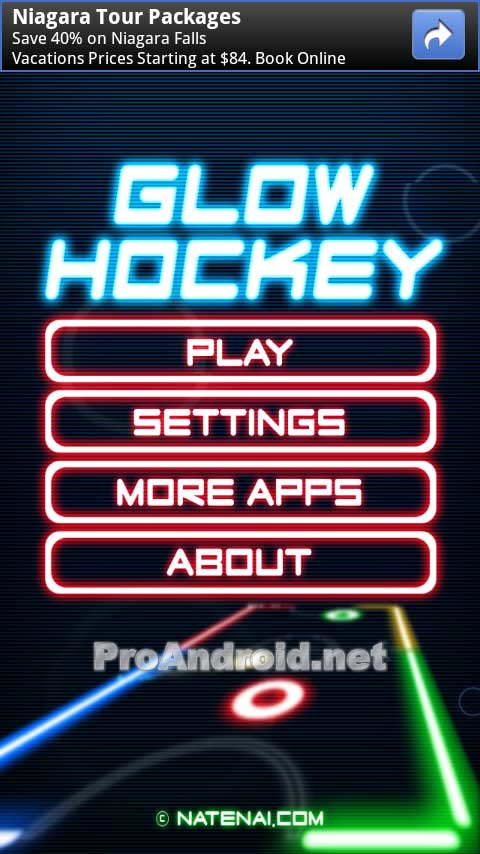 Glow Hockey — очень неплохой вариант аэрохоккея для Android-смартфонов. Игра отличается динамичностью и реалистичной физикой движения шайбы. К тому же вы можете выбрать цвет "клюшек" себе и сопернику, а также цвет шайбы. В игре реализованы красивые видеоэффекты. Доступно четыре уровня сложности.