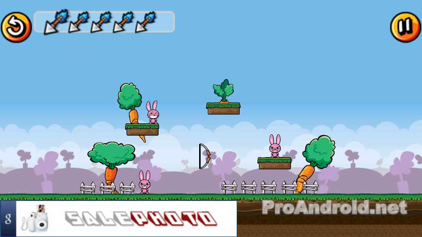 Используя это примитивное, но грозное оружие, истребляйте кроликов, проходя уровень за уровнем. В более сложных уровнях вы сможете запускать тяжелые шары, использовать наковальни, взрывать бомбы. Но в основе всего лежит точный расчет траектории стрел, выпускаемых из вашего лука.