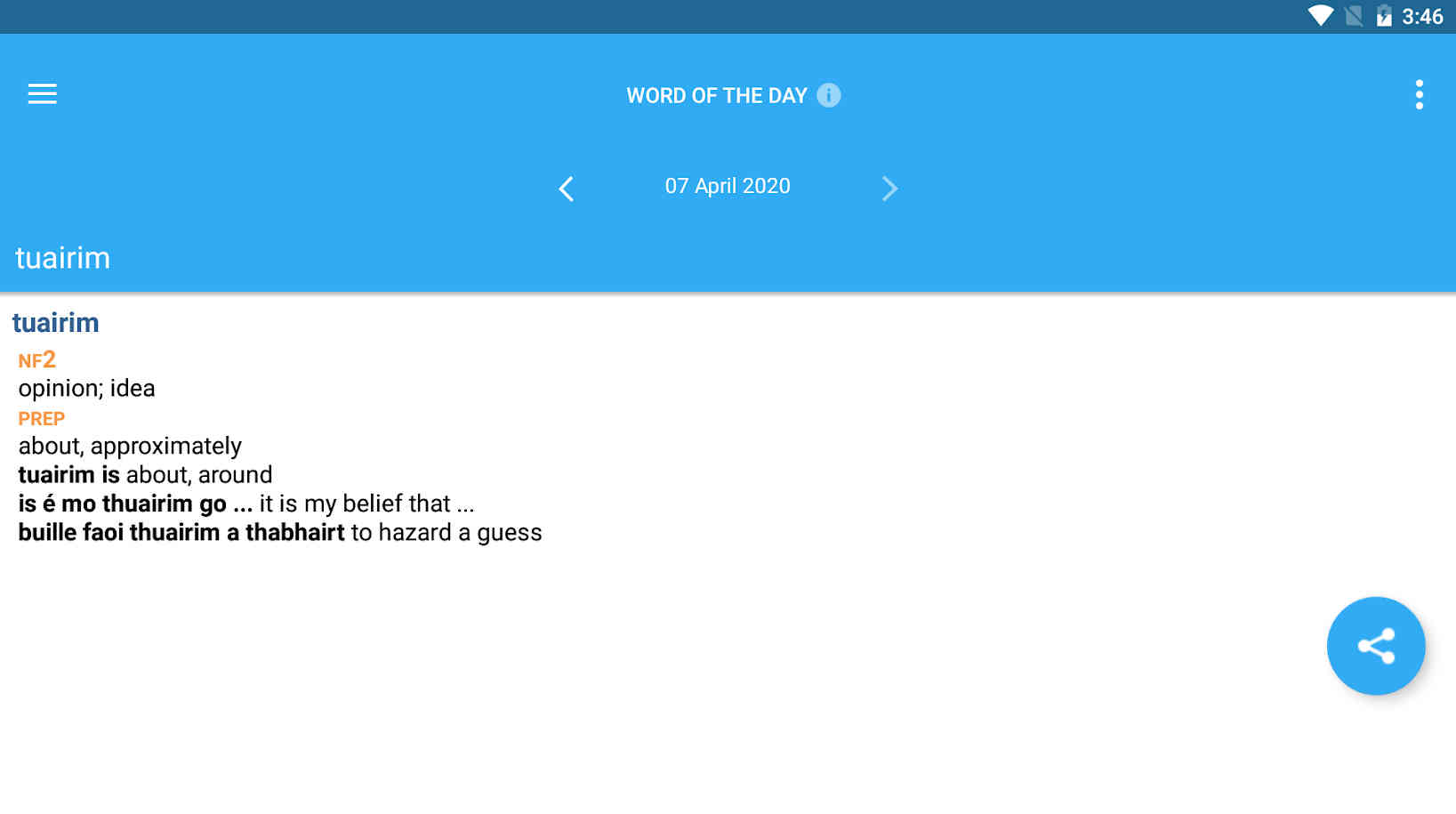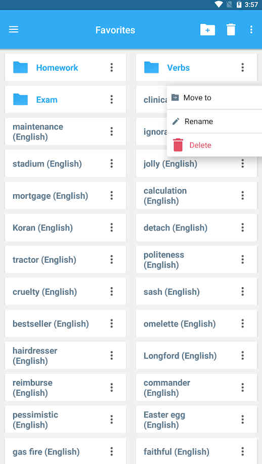 Удобной функцией является Слово дня - так вы можете каждый день заучивать перевод одного нового слова. Есть история переводов и раздел Favorites.