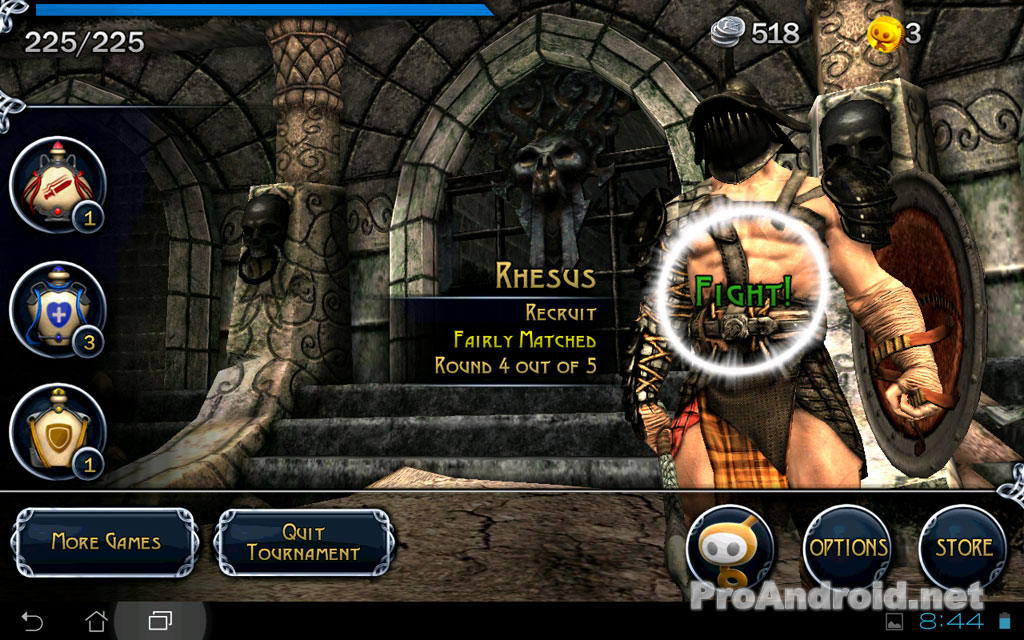 В игре сочетается великолепная графика, динамика, отличные звуковые эффекты и захватывающий геймплей. Вам доступно большое количество оружия, шлемов, щитов и брони. Кроме этого в бою можно применять лечебные напитки. С набором опыта вы сможете прокачать те или иные способности своего бойца.