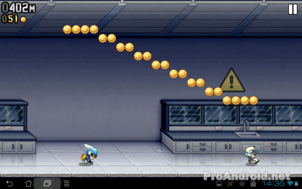 Jetpack Joyride — ворвитесь на вражескую космическую базу и расстреливая по пути всех врагов, собирайте монеты. Избегайте ловушек и ракет, подбирайте разнообразные бонусы, которые позволят вам двигаться быстрее, получить дополнительную защиту, оружие или монеты. Игра очень динамичная и в то же время простая в управлении.