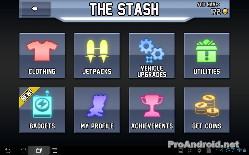 На монеты вы можете купить дополнительное оборудование, транспортные средства, гаджеты, улучшить уже купленное оборудование. Кроме этого по ходу игры вы можете выполнять дополнительные задания, которые также принесут вам дополнительные монеты.