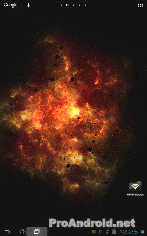 Inferno Galaxy — красивые анимированные обои для Android-гаджетов, которые изображают гигантский взрыв в космосе. Огромнное огненное облако постоянно изменяет свою формы и размеры, становясь то ослепительно ярким, то едва светящимся. При этом на его фоне проносятся огромные темные глыбы.
