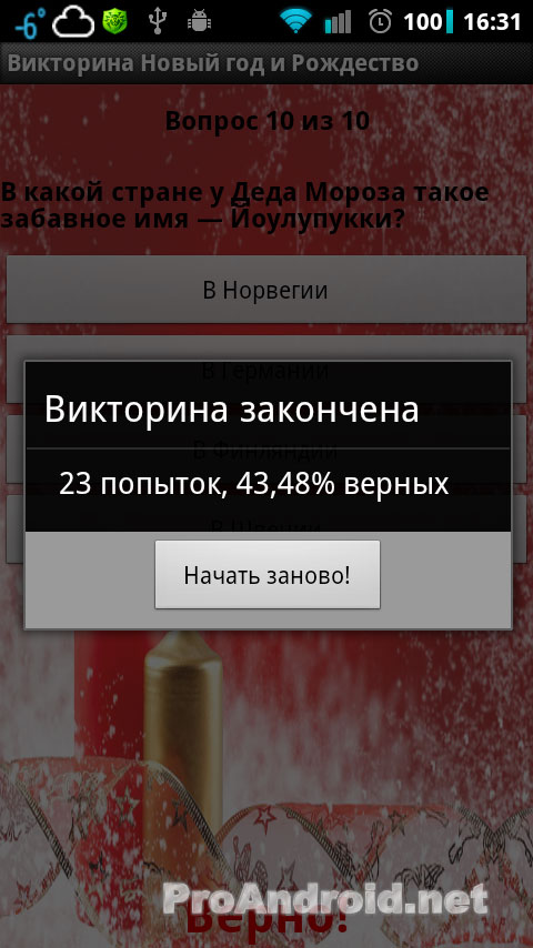 Новогодняя викторина — интересная викторина на новогоднюю и рождественскую тематику. Попытайтесь правильно ответить на десять вопросов. В эту игру можно сыграть на вечеринке с друзьями, на празднике в школе. Вопросы хоть и совсем несложные, но ответить на все сразу смогут далеко не все. Так что проверьте себя и своих друзей.