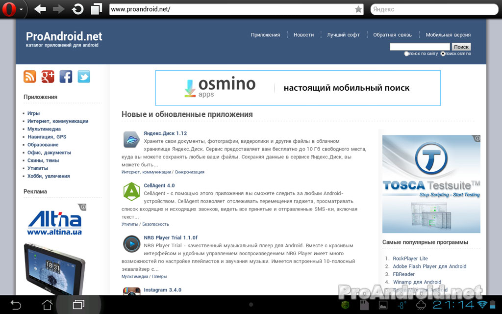Яндекс Opera Mobile — самый популярный браузер для Android с интегрированными сервисами от Яндекса. С его помощью вы сможете быстро искать информацию в сети, смотреть прогноз погоды, знакомиться с новостями, проверять почту, выбирать товары и многое другое. Кроме этого вы можете быстро перейти на свой аккаунт в социальных сетях ВКонтакте и Одноклассники. Браузер дает возможность смотреть видео-ролики и слушать музыку прямо в браузере благодаря поддержке Adobe Flash.