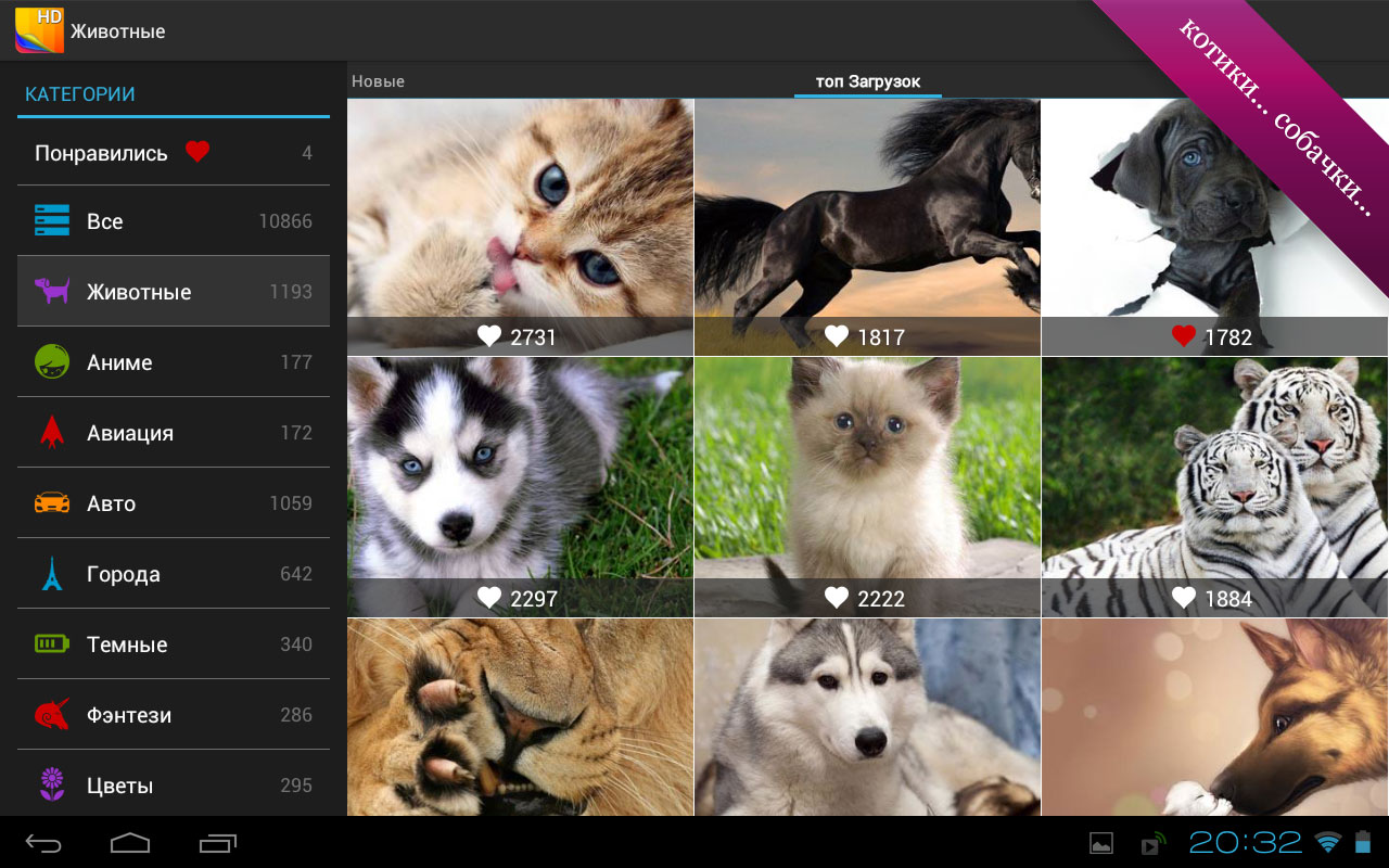 Премиум Обои HD — как несложно догадаться из названия, это приложение для Android-смартфонов и планшетов позволяет получить доступ к большой коллекции высококачественных обоев в HD-качестве. Обои разделены на категории. Вы также можете видеть самые популярные обои, новые, наиболее часто устанавливаемые. Каждое изображение можно предварительно просмотреть в высоком качестве. Обои можно не только установить на домашний экран своего гаджета, но и просто сохранить на карту памяти. Кроме этого вы можете отметить понравившиеся обои, тапнув на иконку сердечка.