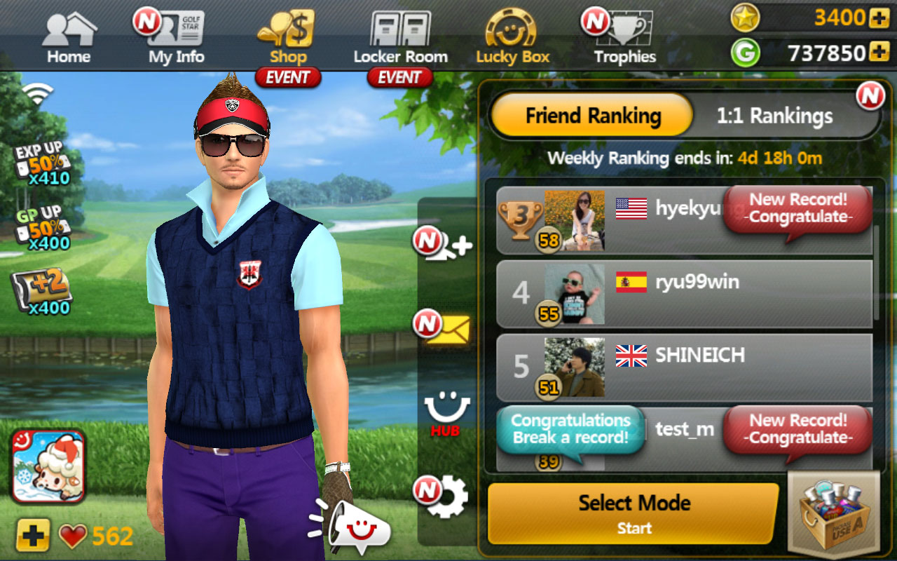 Golf Star — качественный симулятор гольфа для Android. Пройдите путь от новичка до профессионала, побеждая как в одиночных, так и в онлайновых групповых турнирах по всему миру. Вы можете потренироваться на различных полях, провести товарищеский матч или зачетный поединок, а также участвовать в большом турнире.