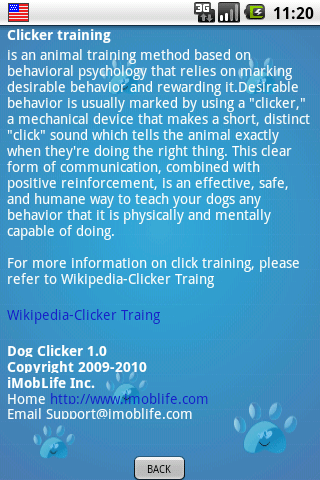 Dog Clicker Lite - программа для Android, которая поможет в обучении животных, например, собак. Тренинг с использованием Dog Clicker основан на поведенческой психологии, которая опирается на маркировку желательного поведения животного с четким звуком клика и вознаграждением. В программе простой и понятный интерфейс, имеется три варианта звука.