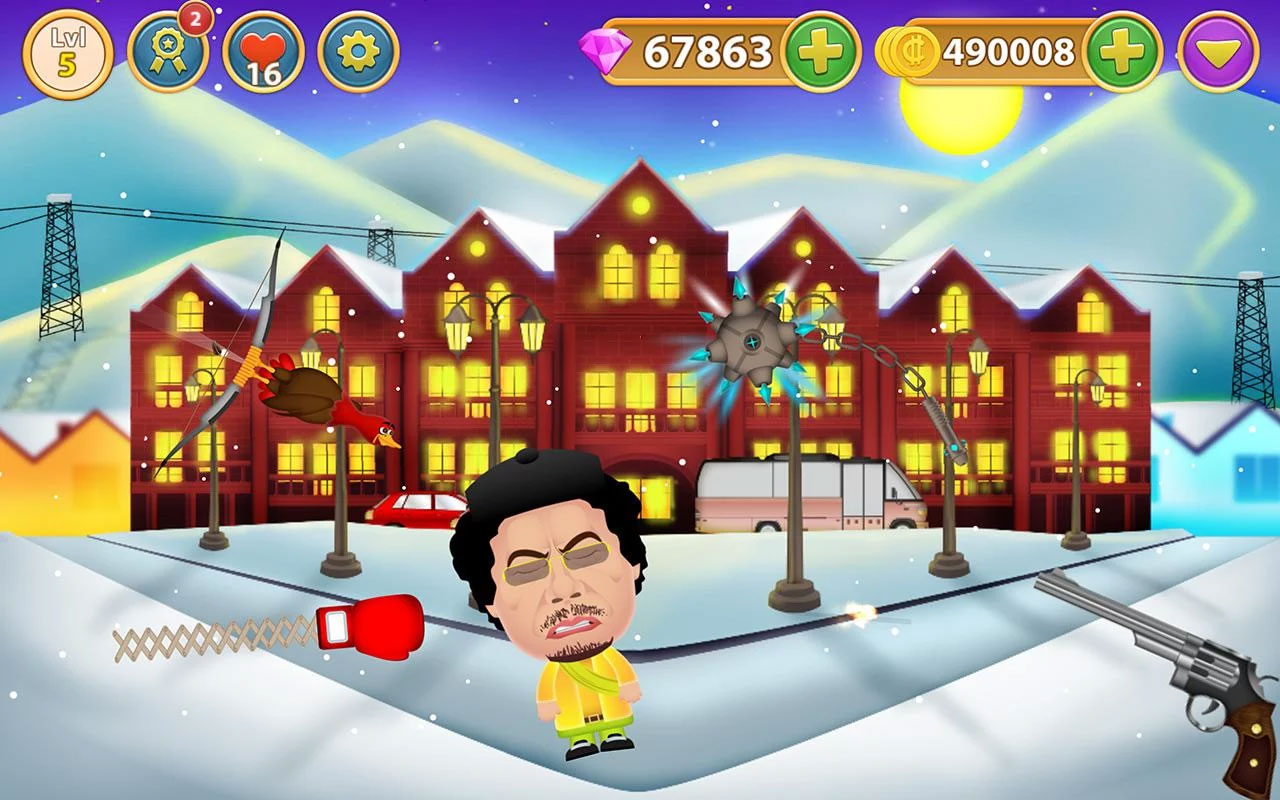 Beat the Dictators — измывайтесь над самыми известными мировыми диктаторами, террористами и бандитами, избивая их, метая в них ножи, стреляя из самого разнообразного оружия. В вашем арсенале имеется множество самого разного оружия, распределенного по нескольким категориям: колюще-режущее, огнестрельное, бомбы и пушки, метательное оружие, а также абсолютная экзотика. Например, вы сможете убить какого-то диктатора при помощи молний, прямо как древнегреческий Зевс. При чем любое оружие можно улучшать. Так, самый обычный метательный нож можно будет оборудовать взрывпакетами и он будет наносить гораздо больше повреждений.