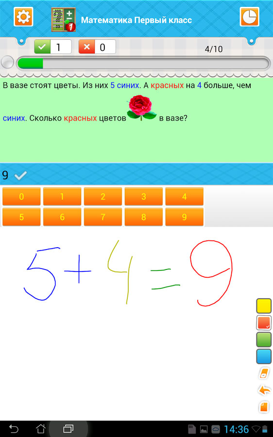При решении заданий можно пользоваться "доской", которая включается в настройках программы. На доске можно рисовать и писать просто пальцем, как мелом по обычной школьной доске.