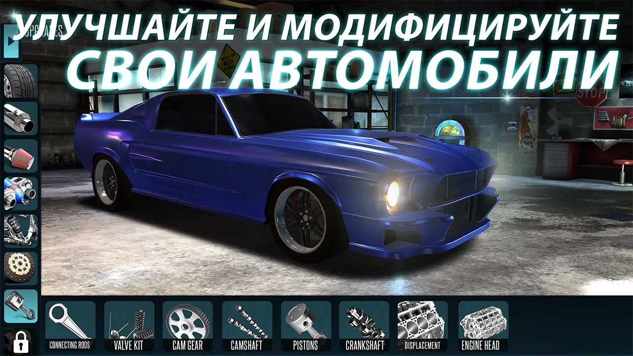 Как и во всех играх, посвященных дрэг-рейсингу, во время гонки вам нужно лишь во-время переключать передачи вашего автомобиля. Зато в гараже вам придется изрядно попотеть, настраивая двигатель и остальные компоненты машины. Дело в том, что в Racing Rivals вы не просто улучшаете двигатель, сцепление, нитро и так далее. Все гораздо сложнее, почти как в реальной жизни. Например, вы можете отдельно улучшить коленвал, клапаны, поршни, систему впрыска, заменить трансмиссию, сцепление. И каждое изменение затрагивает несколько параметров. При чем что-то улучшается, а что-то может существенно ухудшится. Так что нужно хорошенько все продумать перед покупкой и установкой очередного улучшения.