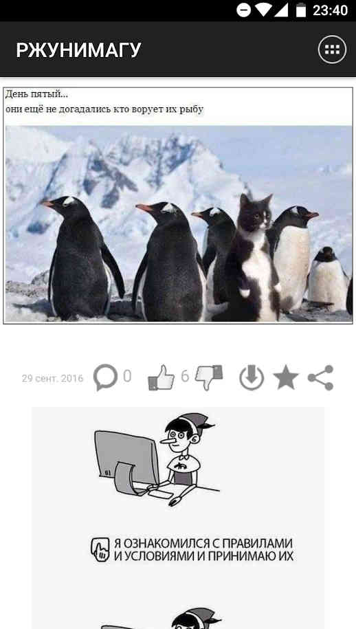 РЖУНИМАГУ — самые прикольные картинки и мемы рунета в одном приложении. Прост опрокручивайте экран и смейтесь на здоровье. Ведь известно что, минута смеха проделвает жизнь на 5 минут. Так что пользователи этого приложения будут жить вечно :)